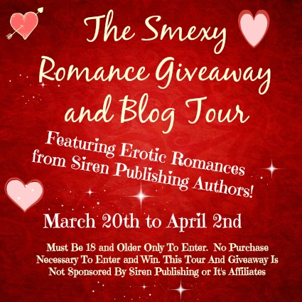 You can enter as often as you like so come back often. To find more great erotic romances and authors associated with this tour and get a chance to sign up again-- click on this link- http://claresblog2thehaven.blogspot.com