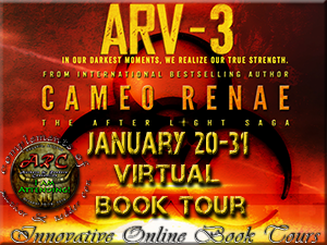 ONLINE LINKS:Website: http://cameorenae.comBlog: http://cameorenae.blogspot.comFacebook: https://www.facebook.com/CameoRenaeFanPage?ref=hl Twitter: https://twitter.com/CameoRenaeGoodreads: https://www.goodreads.com/book/show/18629550-arv-3 BUY NOW LINK:• Amazon http://www.amazon.com/ARV-3-After-Light-Cameo-Renae-ebook/dp/B00GWTXJH4/ref=sr_1_1?s=digital-text&ie=UTF8&qid=1387250063&sr=1-1&keywords=arv-3Giveaway: A print copy of ARV-3 with an ARV-3 Swag Pack.Rafflecopter