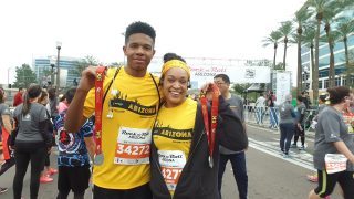 Malia worked hard to build up to the half-marathon distance of 13.1 miles, since the 5K (3.1 miles) had been her farthest race. She joined a gym and found a running partner in her oldest son, Elijah.
