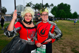 There are some challenges to costumed racing. “It can get tiring,” says Landeros, especially since he also runs with a boom box or speakers. And you might have to deal with unexpected hurdles. Landeros learned the hard way that leather makes for a tough run. And Biel found out foam can be (unfortunately) quite insulating on hot days. But neither has abandoned a costume.