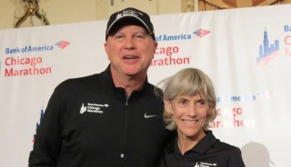 Joan Benoit Samuelson (right) and race director Carey Pinkowski in advance of the 2015 Chicago Marathon (Photo: David Monti/Race Results Weekly)
