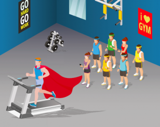 Hearing this forced me to take a look in the mirrored gym wall and examine how this applies to my fitness life. I follow a charismatic leader (my OTF coach), I underwent a transformation in my thinking (and my weight, thank you very much) and—especially on social media—I conform to the rules of the group.