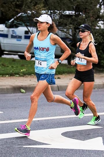 The women’s half marathon was much closer with Ildiko Gaal from Norfolk, Virgina, coming through the beachfront finish in 1:24:37. | Credit: Kevin Morris / PhotoRun.net