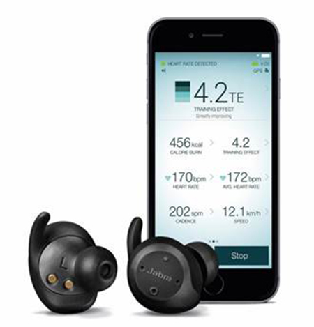 Jabra’s Sport Pulse Earbuds ($200) are Bluetooth wireless to your phone with an optical heart rate monitor in the earbuds.