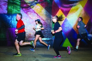 Out on the impeccably neat plaza of the Walt Disney Concert Hall in downtown Los Angeles, home to one of the world’s finest orchestras, hip-hop is booming out of a nearby speaker. A few runners are here, doing those things runners do while they wait: stretch, sip water, sit around, adjust their phone holders. It’s about the only thing going on as far as you can see—by 9:30 p.m., this corner of downtown in this famously car-choked city is dead still. But every minute, dozens of more runners keep materializing like a flash mob: sometimes alone, sometimes in pairs or groups.