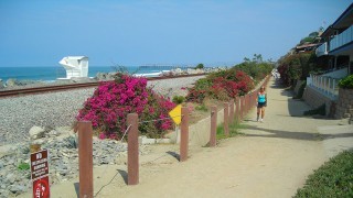 The Beach Trail is about 2.3 miles long, so an out-and-back run can creep close to 5 miles. It is mostly flat, never strays far from the beach, and often parallels the train tracks that run literally steps from the ocean throughout San Clemente’s coastline.