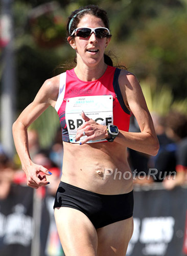 Although Burla has made her name as a marathon—with a 2:28:01 PR—she's run a few fast 10K races on the track too, including a 32:17.34 effort that got her into the U.S. Olympic Trials. “Being a professional runner is a 24-hour, seven-days-a-week job,” Burla says of juggling her running goals with the demands of parenting. “I think many working and runner mothers would agree with me that I always wish I had more time and energy, but the reality is, I do the best I can.” Photo: PhotoRun.net
