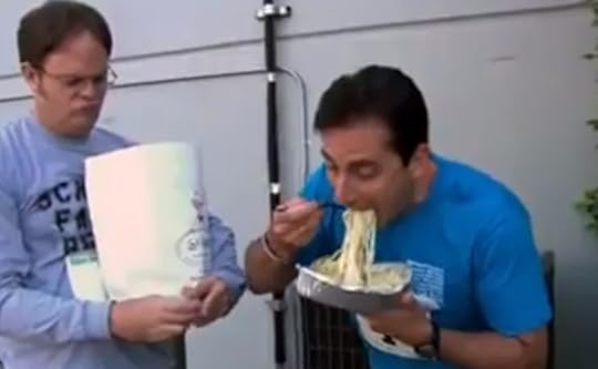 After hitting one of his employees with his car in a 2007 episode, Michael decides to do a “run for rabies” in her honor. After carbo-loading excessively and refusing to drink water, he calls the 5K the hardest thing he’s ever done. “I ate more fettuccini alfredo and drank less water than I have in my entire life.”