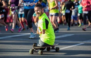 He pushed himself on a longboard through the 26.2-mile course with his partial right leg and reached the finish line in 4 hours, 23 minutes and 12 seconds. He admitted he finished faster than he thought, considering his half marathon PR is just under 2 hours. It was his first marathon, but he says it won’t be his last.