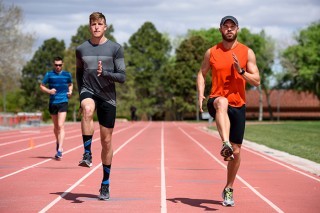 After the warm-up, it's time for dynamic drills to loosen up the body. That's Cas Loxsom and Nick Symmonds, two of the best 800-meter runners in the U.S. Photo: Brooks Running