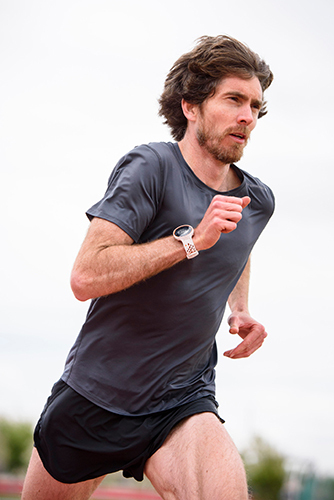 Nick Symmonds powers to the finish of a 400-meter rep. Symmonds is a two-time U.S. Olympian and the silver medalist in the 800m at the 2013 World Championships. Photo: Brooks Running