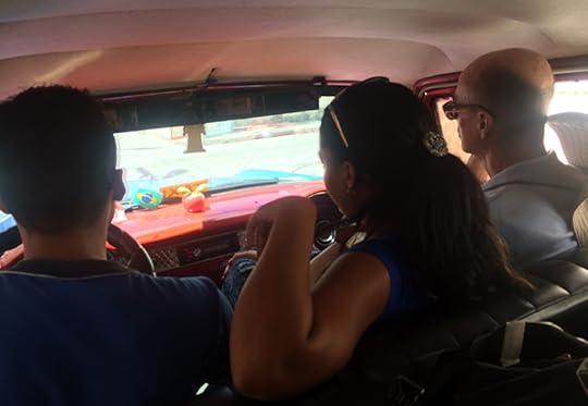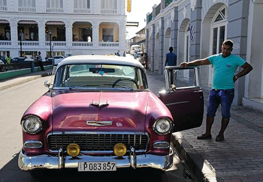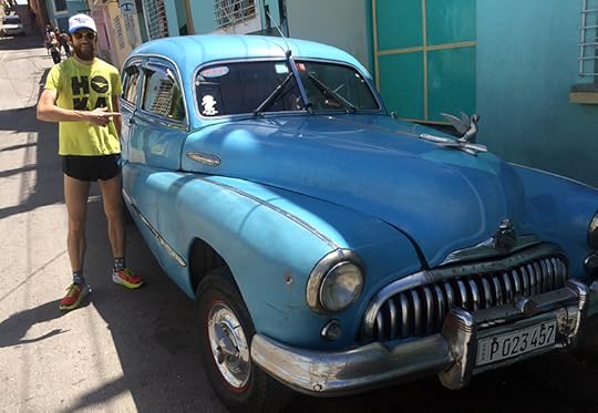 Wardian hams it up next to a mid-1950s Buick during a run in Santiago de Cuba. Photo: Brian Metzler