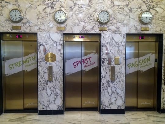 A bank of elevators at the Fairmont Copley Plaza Hotel serves up a unique dose of inspiration.