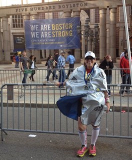 After not being able to finish at the 2013 Boston Marathon due to the bombings, Rhonda Foulds came back the following year in 2014 to run the full race. Photo: Courtesy of Medtronic Foundation
