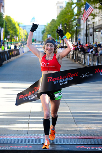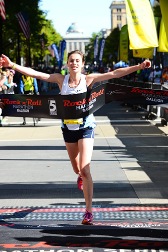 Any professional knows that the best way to retire is with one final performance of a lifetime. Hometown hero Bobby Mack did just that at Sunday’s Rock ‘n’ Roll Raleigh Half Marathon presented by WRAL. The 31-year-old Mack, who lives and works in North Carolina’s capital city, broke the finish-line tape for the 13.1 miles in a blazing one hour, eight minutes and two seconds—a full 35 seconds ahead of rival Christian Thompson who finished second in 1:08:37. Sunday’s victory was a repeat of his first-place showing at the race last year. The bronze in the men’s division went to Tibor Vegh (1:10:23).