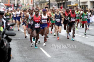 But “honest” wasn’t fast enough for Karoki. With Kamworor latched on, Karoki blew through the second 5K in a blistering 13:48 (27:59). Farah checked the time and wasn’t quite sure what to make of the pace. Would they just blow up later?