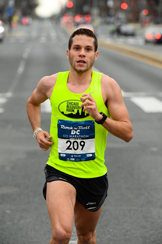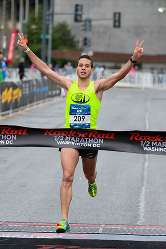 Mizael Carrera, a Puerto Rican living in Addison, Ill., dominated the half marathon, clocking 1 hour, 6 minutes, and 17 seconds to break the tape in front of RFK Stadium with a wave of the hand. The 24-year-old had a huge day, setting a 2-minute PR and winning the race by a wide margin over second-place finisher, Carlos Jamieson (1:07:53). Third place was awarded to Andrew Brodeur who was overcome by Jamieson in a sprint finish to the line.