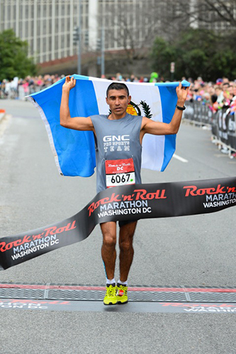 The men’s marathon went to Alfredo Arevalo Reyes, a Guatemalan citizen won in 2:30:05 while holding his country’s flag over his head. Reyes, an Olympian who boasts a 2:12 marathon PR, signed up to race yesterday and led from start to finish. “I have never run in a Rock ‘n’ Roll race before and I have to say this was the most fun I’ve ever had in a marathon,” he said through a translator. Second and third place were awarded to Steve Chu (2:34:11) and Dirian Bonilla (2:37:25).