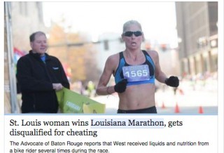 According to several reports, Mandy West, 39, the first female finisher at the Jan. 17 Louisiana Marathon, was disqualified shortly after the race for “receiving assistance.”