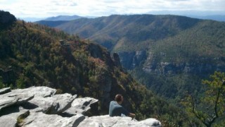 The Linville Gorge Wilderness, in the mountains of western North Carolina, is part of the Pisgah National Forest. The gorge is formed by the Jonas Ridge on the east and Linville Mountain on the west and is bisected by the Linville River which drops 2,000 feet into the valleys below. The terrain is steep and rugged with numerous rock formations. It is covered by dense hardwood/pine forest and a wide variety of smaller trees and other plants.