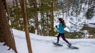 1. Fear not. The physical act of snowshoe running doesn’t require any special skills. Kimball says that if you can run, you can snowshoe. The only transition that runners will experience is when it comes to hill climbing—it’s OK to walk up hills that you’d normally be able to summit easily if they weren’t packed with snow. “Mind your heart rate, not the speed you think you should be going,” Kimball says.