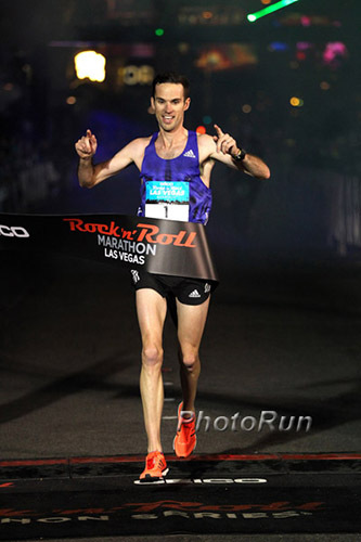 In the GEICO Rock ‘n’ Roll Las Vegas Marathon, Andrew Lemoncello, a 2008 Great Britain Olympian in the steeplechase, took first in 2:21:47. Tommy ‘Rivers’ Puzey of Flagstaff, Ariz., finished second in 2:34:36.