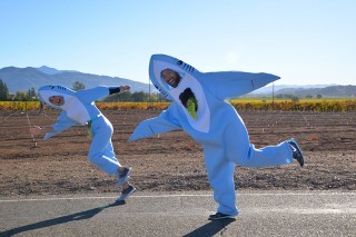 Although several races took place on Halloween with plenty of clever, wacky, spooky, and fun costumes, not many ran through a vineyard with wine-tasting stations and creative costumes like the Healdsburg Wine Country Half Marathon in northern California. Marking the end of autumn wine harvest, this Halloween-themed race passes through two dozen wineries along the course, starting at Virginia Dare Winery and finishing on the Trentadue Winery grounds for a post-race wine and music festival. From cruising shark pairs to a very Grouch-y individual, here are the best Halloween costumes from this year’s race: