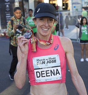 SAN JOSE — Deena Kastor is at an age where most pros hang up their racing flats, but nothing appears to be stopping her. Today she tied the women’s U.S. and World Masters record in the 5K in 15:48, winning the women’s Rock ‘n’ Roll San Jose 5K and placing third overall. The women’s 5K Masters Record was previously set by Colleen De Reuck in Albany, New York, in 2004.