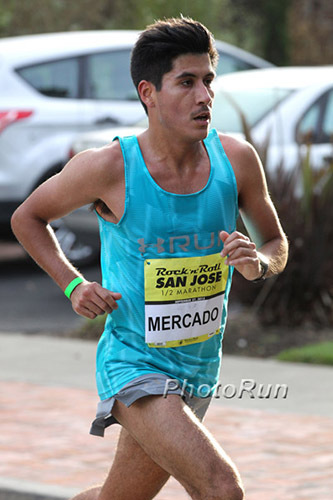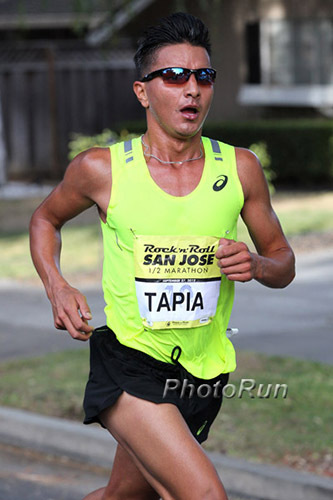 The race got off to a quick start, as five men passed through the mile in 4:42. By 5K (14:53) it was down to three—Keflezighi, Chipangama and Tapia—as two packs chasing the Olympic Trials standard of 65 minutes formed in the background. The first of those groups caught up to the three leaders by 10K and eight men passed the 6.2-mile mark together in 29:55. Determined to keep the lead group as tight as possible, Keflezighi, Chipangama and Tapia opened up a small gap into mile 7, before a 4:45 split from mile 7 to 8 dropped Tapia and made it a two-man race to the finish line.