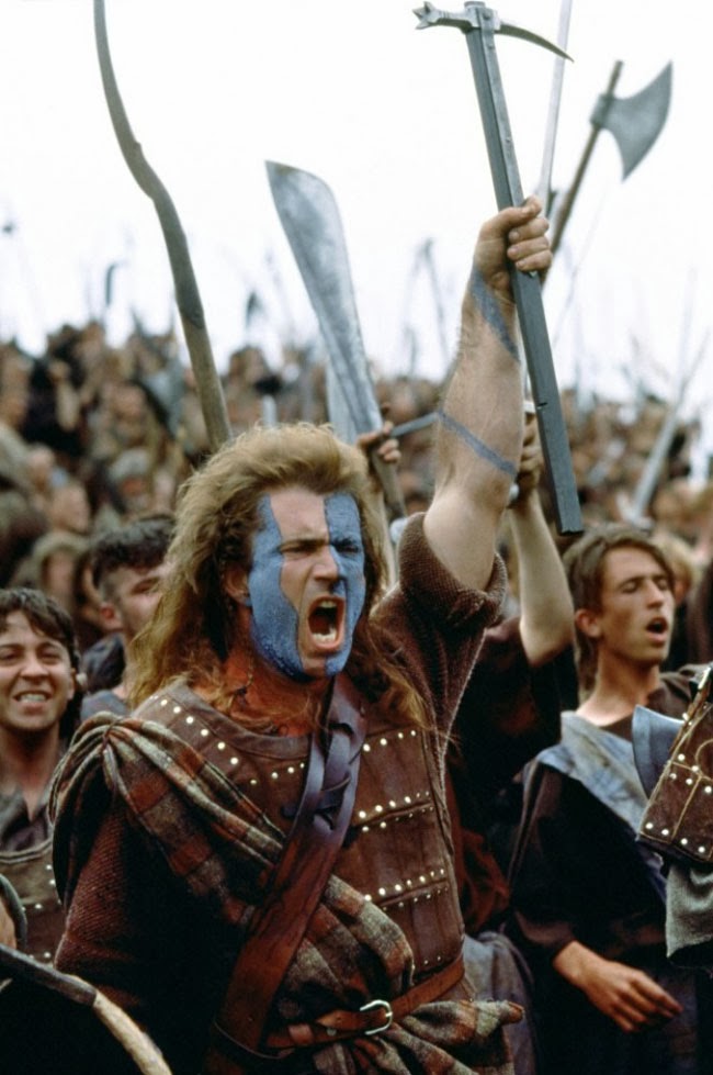If you haven’t seen Braveheart, here’s the skinny: Scotland was invaded and conquered in 1296 by King Edward I of England. And consequently, Scots suffered abuse at the hands of English soldiers who raped and pillaged under the protection of English law. William Wallace (i.e. Mel Gibson) led the resistance against the English, inspiring thousands to fight in the name of freedom.