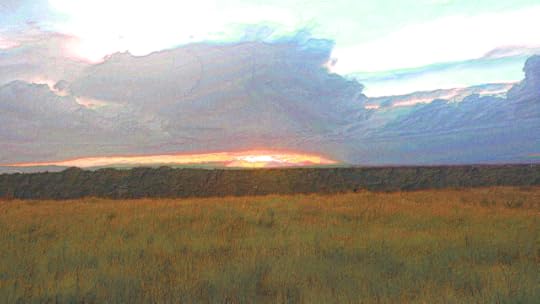 Just as the sun began touching the horizon, a clearing opened up before Ben. The ground rose, creating a mound that prevented Ben from seeing further into the space. The ATV tracks headed up the small rise, so he continued on.