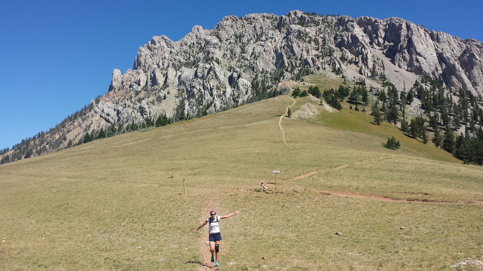 Part of the ridge, stretching out before us.I've never been much of a runner. For me, running has mostly been a way to train cardio for climbing, rather than a pursuit on its own. Sarah, by contrast, was a collegiate track athlete.