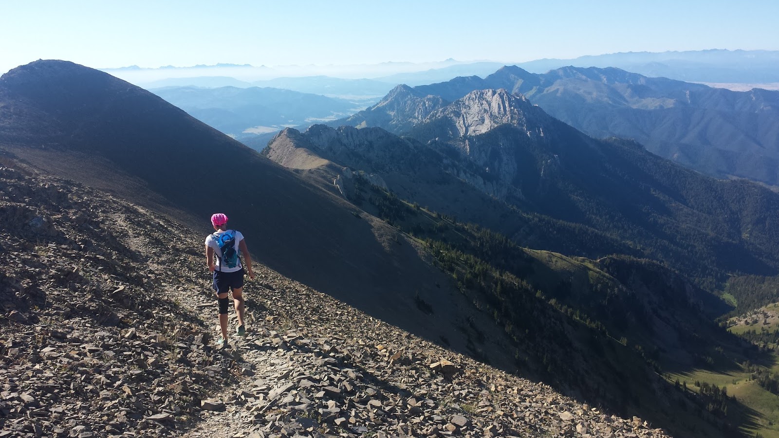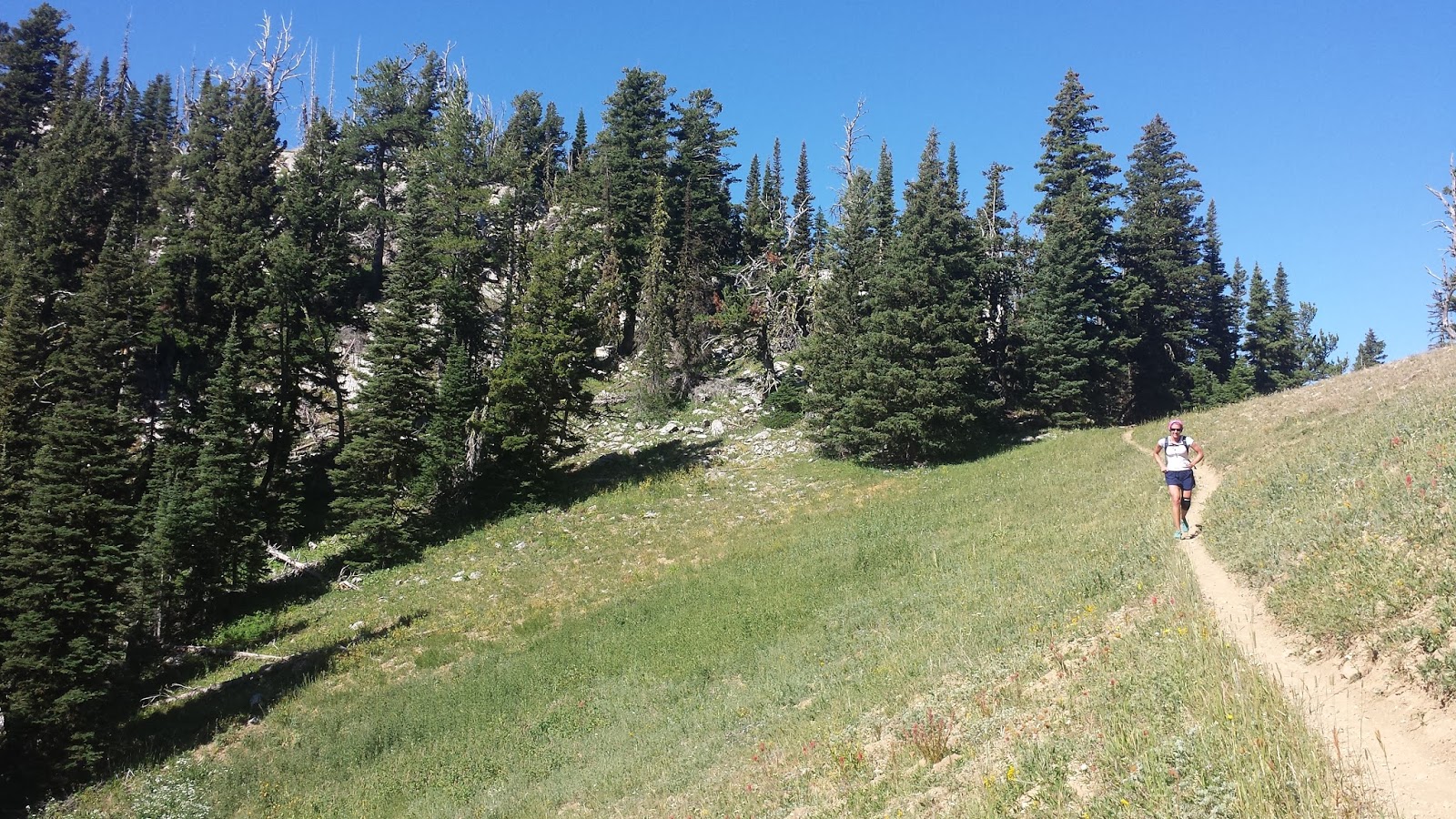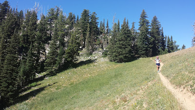 Ross Pass. Just before half way.The ridge is so beautiful, and it was really great to be moving quickly over so much ground. I felt good during the beginning of the run, but by the last 5 miles, I was hurting (well beyond the "good" pain). Thankfully, Sarah was still going strong and I was able to keep chasing her.