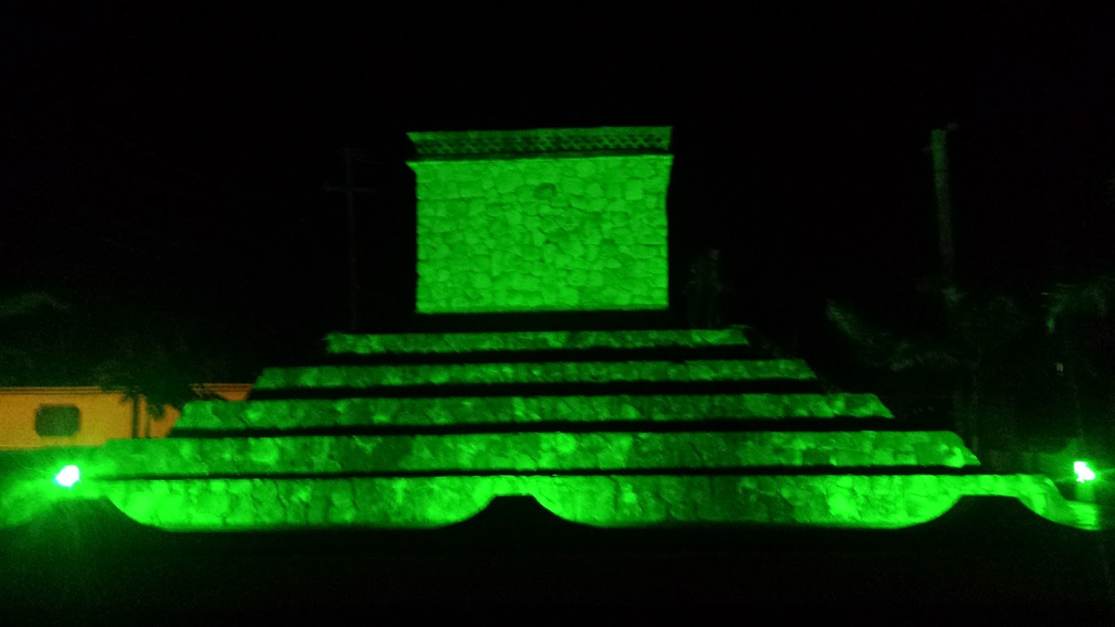 Mayan memorial at night.