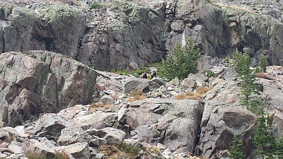 Down climbing after getting off route... again. :-)It also wouldn't be a trip to the Tetons if we didn't see a bear. As we were trudging back to the trail head, just a quarter mile out, we saw 3 bears. One was a grizzly, walking towards us on the trail. Thankfully s/he decided to go around, rather than through us, but it was a tense few moments.