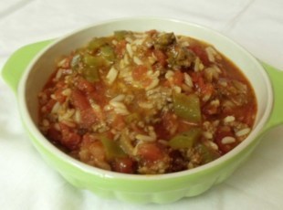 1 In large pot brown ground beef, drain off fat and add onions and peppers, cook until the onions are translucent but not letting them brown