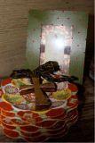 It is so welcoming, to have a sign somewhere near the front door to greet your family and friends. From a very personal "Welcome Smith Family" or a seasonal "Merry Christmas" to "We are so glad you are here" on a casual chalkboard or an elegant mirror or glass framed, and write with a wipe-off marker, that welcome sets the tone for the rest of the event. I used an antique French cupboard door and painted it with chalkboard paint on the raised panel part.