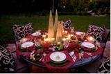 By seasonal I suggest a "Santa" figurine or such, a gingerbread house, or a standing cross to have in the center of the table. A clear jar of candy canes, M&M's or such would do just fine, as well. Think: Something available only at this time of year. I usually have plenty of items in the Holiday Decor that I switch out to put on the table for each dinner.
