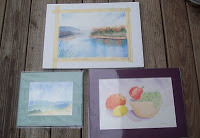 Michael's water-color paintings that he did during Folk School. I like the top one the best but they are all good.