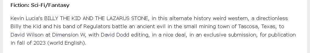 It's been a long-time coming - almost thirteen years, and many, many, MANY rewrites - but my long-awaited Weird Western, Billy the Kid and the Lazarus Stone, will finally blast its way into the world courtesy of David Niall Wilson and Crossroad Press Audio & Digital Books and Macabre Ink. Stay tuned!