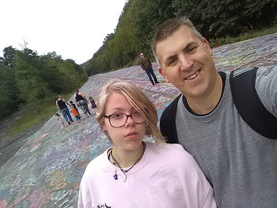 Graffiti Highway, Centralia, PAWe had a fun time. There's not as much "creepy stuff" to see, anymore. All the buildings are gone, and the steam vents are now closed. "Graffiti Highway," which used to be covered in weird spray-painted occult symbols, is now one big patch of layer upon layer of colorful graffiti.
