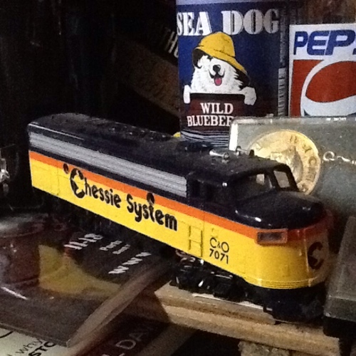 Over the years, I've fiddled with the idea, even made some half-hearted attempts at layouts, but quickly realized I had neither the space nor the time to do it RIGHT. However, that hasn't stopped me from collecting supplies and trains, track and buildings whenever I see them at garage sales, and I have totes and boxes full of stuff waiting to be used. This love of trains, of course, inspired my short story "On A Midnight Black Chessie" in my first short story collection Things Slip Through.