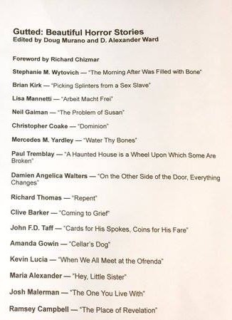 On another note, I am so beyond stoked to see my next Clifton Heights story, "When We All Meet at the Ofrenda" appearing in collection featuring Neil Gaiman, Clive Barker, Ramsey Campbell, Richard Chizmar (introduction) and so many others. Just take a gander at the TOC below...