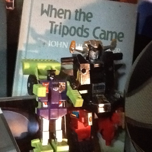 Also of huge importance was the comic strip version of Johnathon Christoper's When the Tripods Came, The White Mountains, featured in Boy's Life Magazine, and I'm mentioning it here simply because my old Transformer (a Decepticon, to be exact) and Voltron-Rip-Off Toy stand before the book. Waiting for that monthly installment of The White Mountians was a pleasurable agony, and I believe that those sluggish, H. G. Wells Martian-rip-offs offered me my first shivers of cosmic horror.