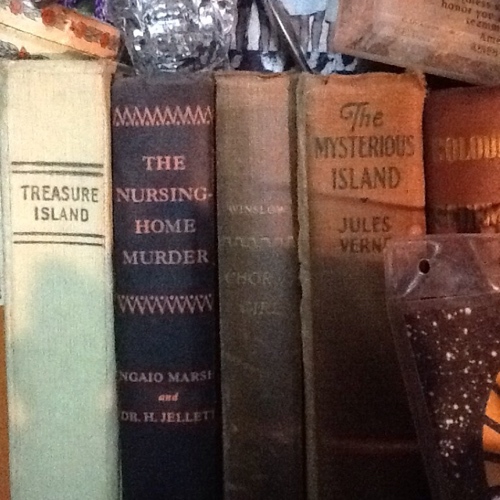 When she did pass they came into my possession, and they were marked by an amazing diversity. Classics such as Mysterious Island by Jules Verne, Treasure Island by Robert Louis Stevenson, Riders of the Purple Sage, a collection of Ellery Queen short stories, mixed in with forgettable titles such as The Nursing Home Murder and Crimson Ice, also along with several John Carter novels by Edgar Rice Burroughs. My father said my great grandmother went through a period in which she collected these book club editions indiscriminately, for no other reason than she wanted a collection a books. The romantic in me, of course, likes to think she was collecting them for her yet to be born great-grandson who would entertain fantasies of being a writer someday.