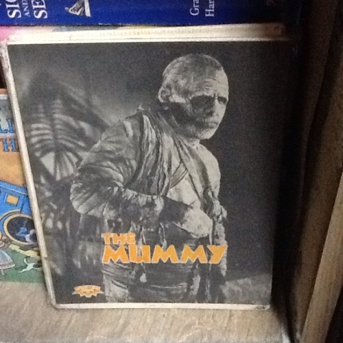 They summarized the movies, with black and white stills from the film. I liked those pictures the best, but I must've read the stories over and over too, because when I flipped through The Mummy upon finding it last year, I recognized nearly every word immediately.