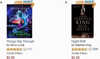 Kevin Lucia's Things Slip Through reaches #28 on the Amazon top horror short stories list. Right next to Neil Gaiman. Congrats, Kevin! And #2 on the Hot New Releases list. :-)Now, I have no idea what that means, really, or how many ecopies have sold. And actually, when I tried to search the rankings myself an hour afterward, I came up with nothing. So maybe it's one of those things that lasted that way until everyone woke up and started buying ebooks of more important people than I. Who knows?