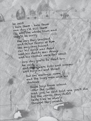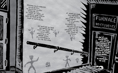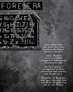 So an idea was born: a Lovecraftian take on Spoon River, of a small little Massachusetts town next to Miskatonic Falls and the Miskatonic River, where something had been loosed... and all that remained of the townspeople were poems, limericks, even haiku scribbled all over the place: doors, walls, floors....