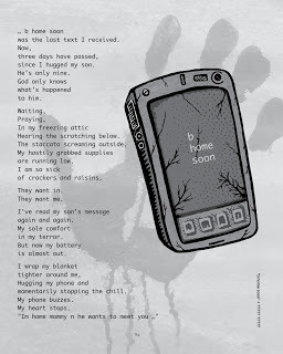 Submissions and editing took some time. I got lots of poems, and found very quickly that while editing fiction - as I did for Shroud's 2010 Halloween Issue - can be a very cut and dry business for me, either the story "grabs me" by page two or not at all, editing poetry was SO much more involved, taking into accounts all the different forms. Also, I wanted to avoid very OBVIOUS Lovecraftian tropes and images, focusing more on townspeople who were slowly unraveling as they saw dark things flitting to and fro in the shadows.