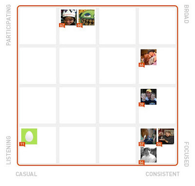 Basically, I blog fairly consistently, about fairly consistent things, and have decent interaction with people who read what I blog. There's even a cool little grid, ranking me alongside other folks considered to be my "colleagues":